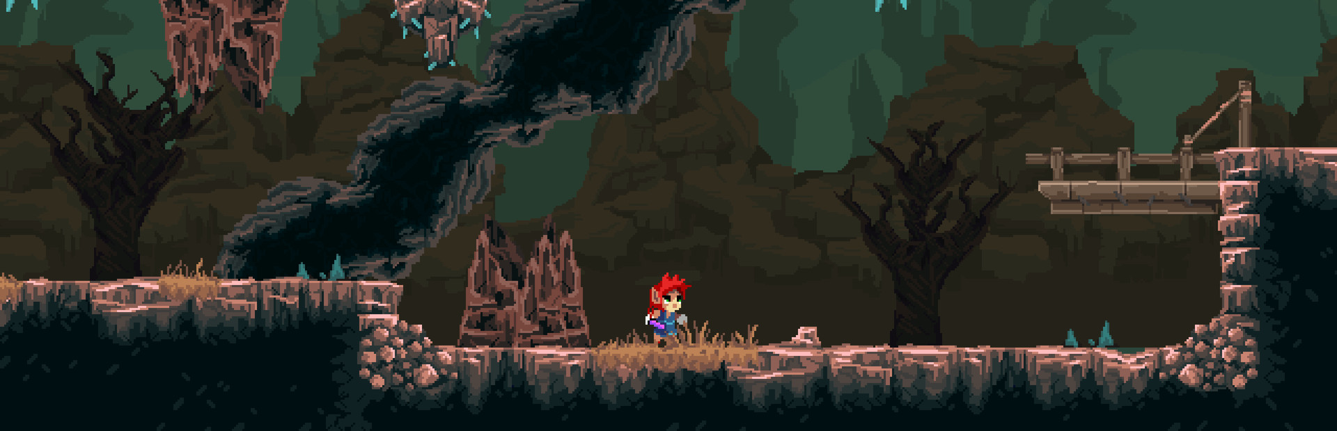 The game is a 2D platformer with RPG elements. You have to move around the locations, clearing rooms from enemies and solving simple puzzles along the way.