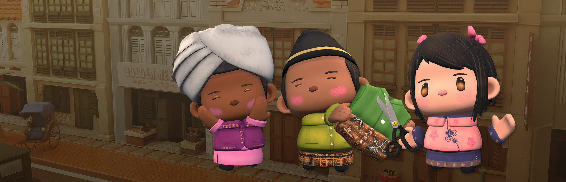 A Stitch in Time is a couch co-op game set in early 20th century Singapore, where players take on the role of an apprentice in a bustling tailor shop. Through teamwork, players cut, and sew garments, gaining insights into the history and significance behind each ethnic outfit.