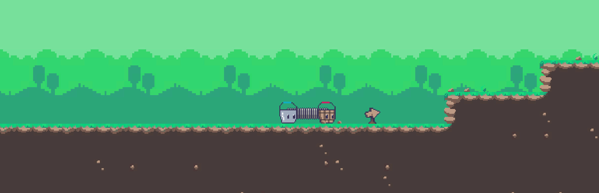 Adventure of the Bucket is a cooperative multiplayer game for two players that can be enjoyed locally. Jump into a unique world where two distinct characters, the Iron Bucket and the Wooden Bucket, are connected by a single spring. Experience the innovative gameplay as you stretch and launch the spring to solve stages. Ready to take on the challenge alone? You can control both buckets and play solo!