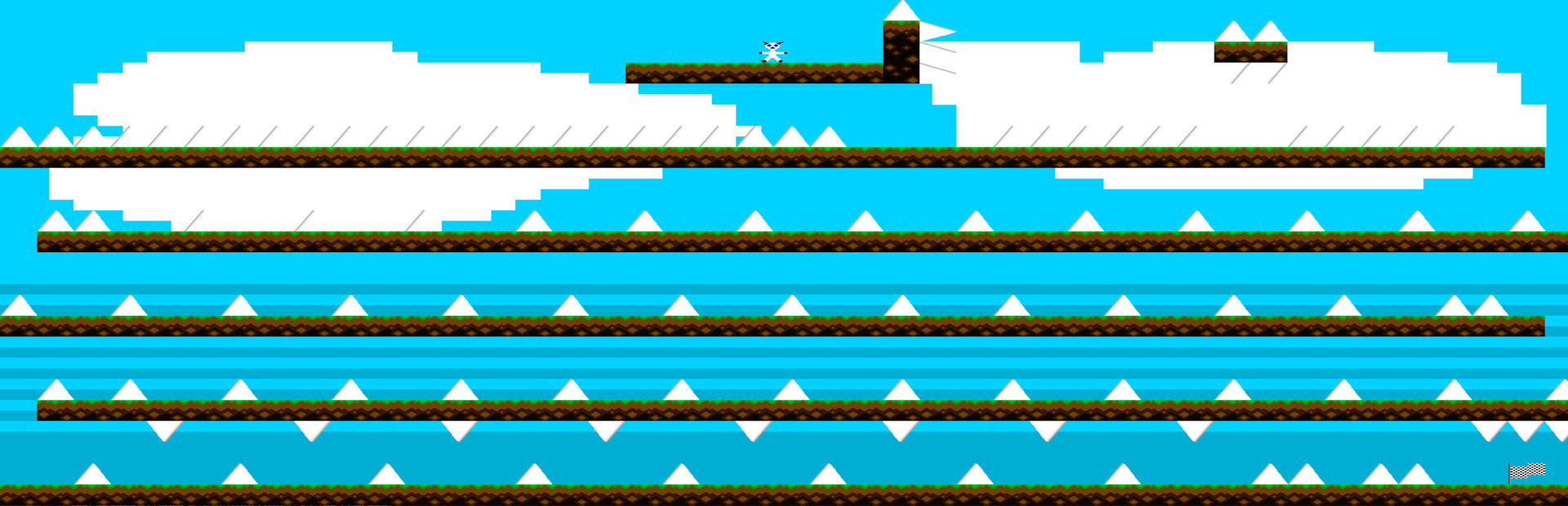 Enough about the game's "lore," let's get on to what THIS game is. As I've said, this is a remake, and like any good remake, it takes what the original did and does it better. In this case, it's being a garbage game. This game, similar to the original, has 8 chapters, with 20 levels each, totaling to 160 (a level refers to one screen, or "room" in Game Maker Studio terms). The graphics resemble updated (yet still low quality) versions of the originals, and the music ISN'T stolen from Nintendo this time, or by anyone, for that matter. The game still lives up to it's precision platformer style. In fact, it does it even more so, almost to the point of being completely unfair, especially in a lot of later levels. Falling out of the screen will result in a chapter reset, setting you back to the first level of a chapter. Your goal of each level is to get Samuel from the beginning of the level to the white flag (the flag isn't always white, it changes depending on the type of level). You'll also likely get stuck in walls, because it's a common thing in this game. Sometimes, this will also cause the game to crash really badly, so much so that you'll need task manager to close the game. Yes, this was intentional. I would've made the game free, but buyer's remorse is part of the experience.