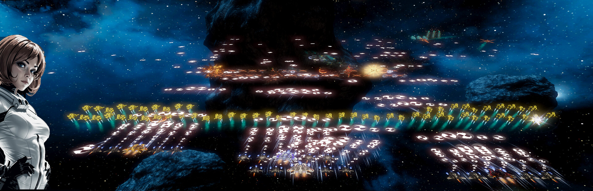 At any time, a new player can connect a gamepad and join you in co-op mode. The alien fleet will be stronger, but you two are an unbeatable team anyway, right? In the full version, you can also add computer-controlled coop buddies by pressing the two fire buttons and the A button. Up to five coop buddies are allowed. You can also start with a specific number of co-ops.