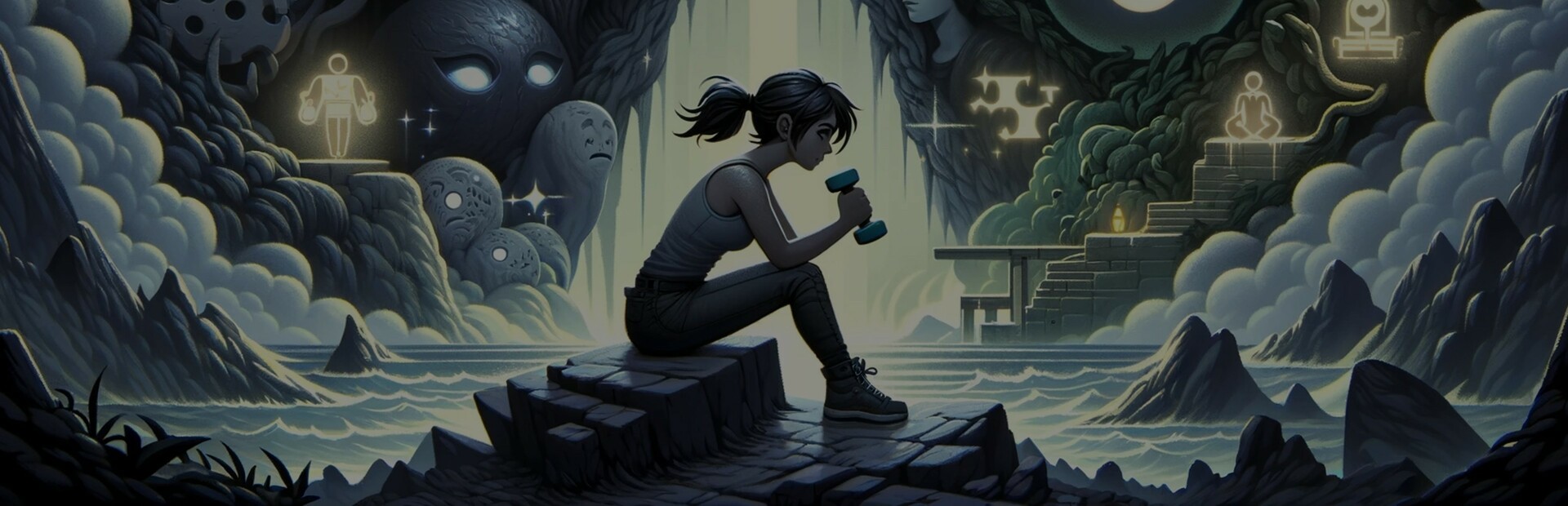 Enemies represent mental health challenges, and puzzles require creative thinking. The goal is to overcome challenges and build emotional resilience to reach the end. The game has an uplifting story and visual arc to show perseverance and seek help for mental health. The game uses a dark, lo-fi soundtrack to feature within it, and has a stylized art style.