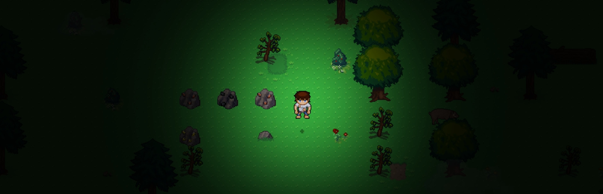 Explore a random generated world populated by dangerous creatures, build a acamp, gather resources, and craft all the items, weapons, and potion you need