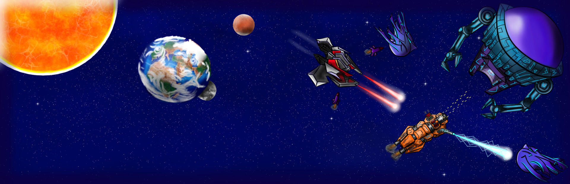 Pilot your rocket in real-time, action-packed missions. Navigate deadly areas full of alien ships, lock on to targets, and crash into them to explode. Every mission is unique and requires quick reflexes and smart decisions.