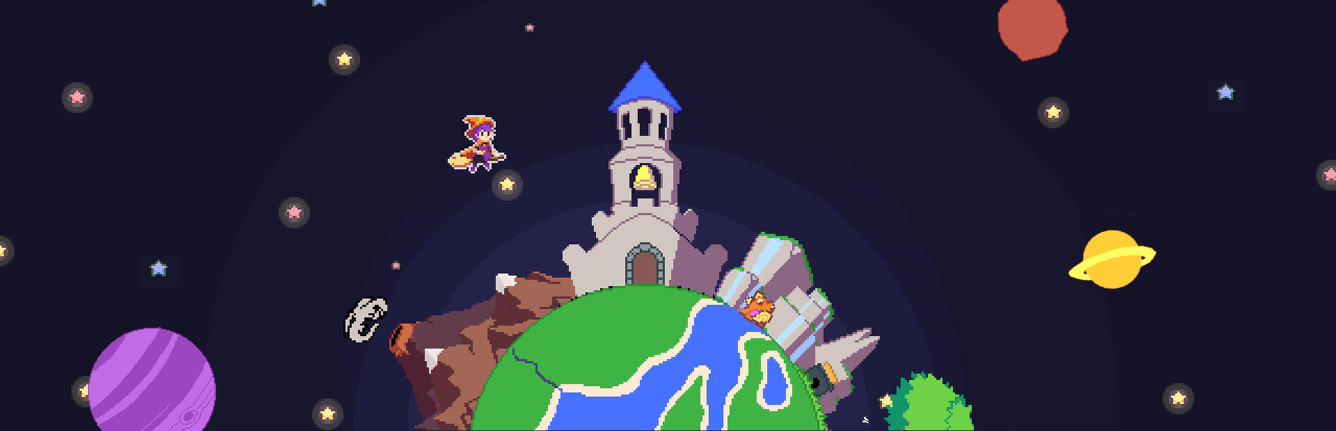 Play as Atlas, a magical hero born from a star on a journey around the world in search of the fallen pieces of the night sky. Explore the mysteries of a magical planet where secrets and formidable challenges await your discovery. Discover and craft magical powers and equipment to defeat enemies and overcome obstacles. Fly on a broom and perform advanced techniques and acrobatics to soar through environments and reach new heights. Fight powerful celestial beasts transforming and restoring them into protective constellations that illuminate the darkened sky. A malevolent presence lurks at the heart of this planet's mysterious history. Will you rise to the challenge, harness the power of the stars, and thwart the encroaching darkness threatening to engulf the cosmos?