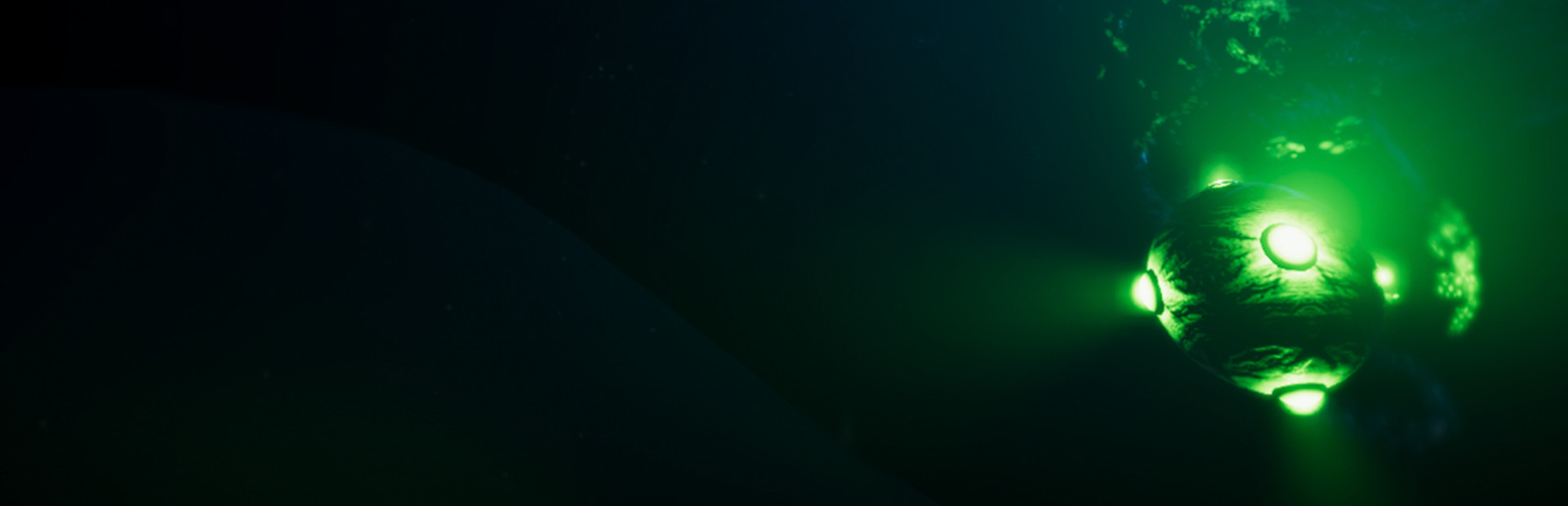 The game acts as a first person underwater simulator, featuring a vast ocean bottom to explore and survive. Your craft has four key abilities that will assist you in navigating this dark environment, while also avoiding incoming meteor strikes that will drain your craft's energy. Keep your energy above zero as you manage your ship's exploration abilities, or the mission shall fail!