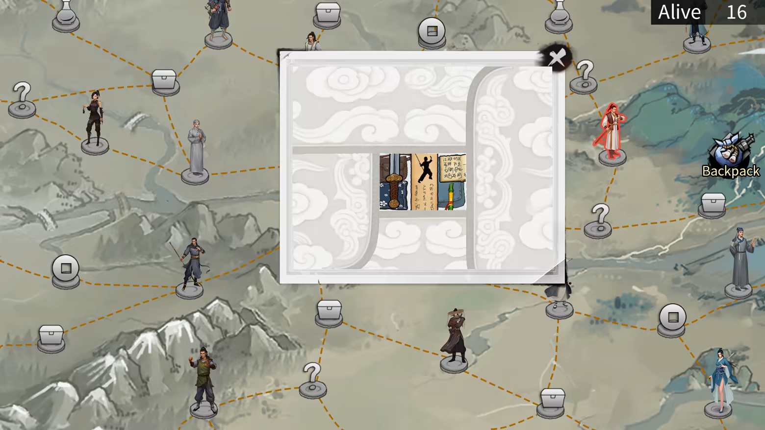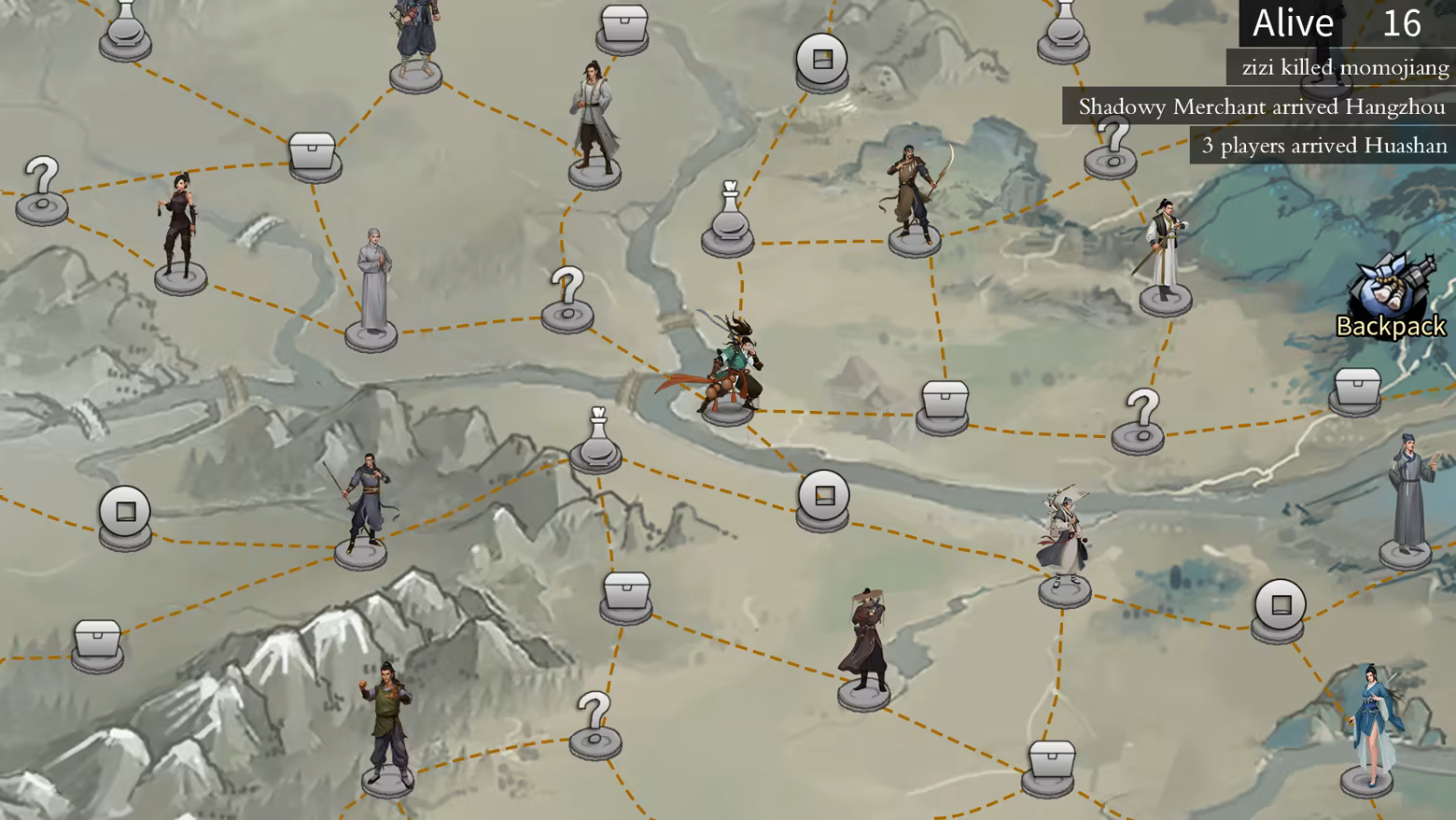 Backpack jianghu is a inventory management and battle royale game. Choose a starting sect, enter the world with 99 others, pick your path, battle and grow, and compete in the final showdown at Mount Hua's peak.