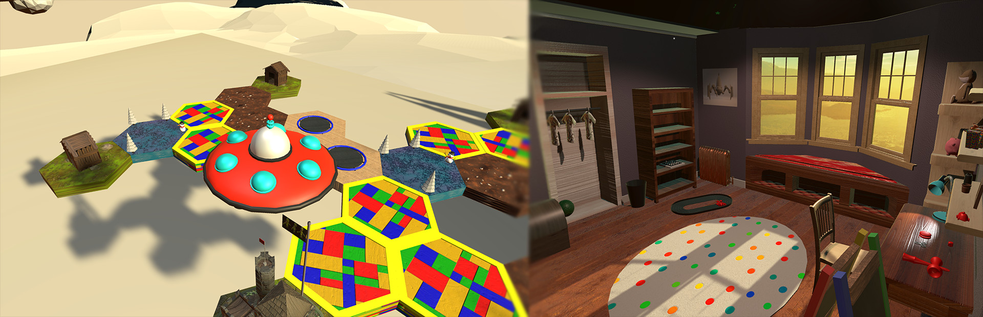 Batteries Included is a Virtual Reality action / light-strategy game for the HTC Vive. Fall back into a nostalgic state as you return to the time of your childhood! Explore your bedroom and use keys to unlock the door to your imagination. Once in your imagination, wrangle mischievous toy Goblin Goons to the castle through various obstacles.