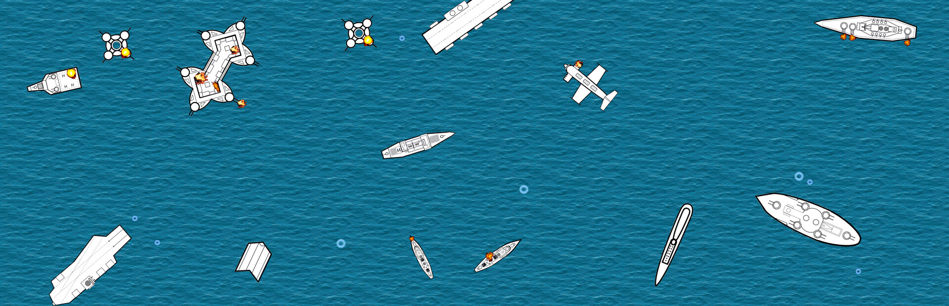 Select from a catalogue of 20 unique ships (and structures), inspired by vessels from the 20th century, to place on the battlefield. Each (except few) has unique shape and a special damage pattern or a unique ability.