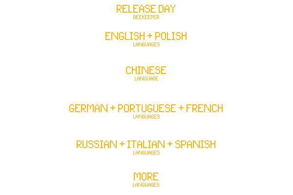 We want our game to satisfy as many players as possible. Therefore, over the next few months, more languages will be added to production, so that as many players as possible can play "Beekeeper" in their native language.