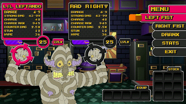 - Gain experience, hit the Lawker Room, and level up each fist individually.