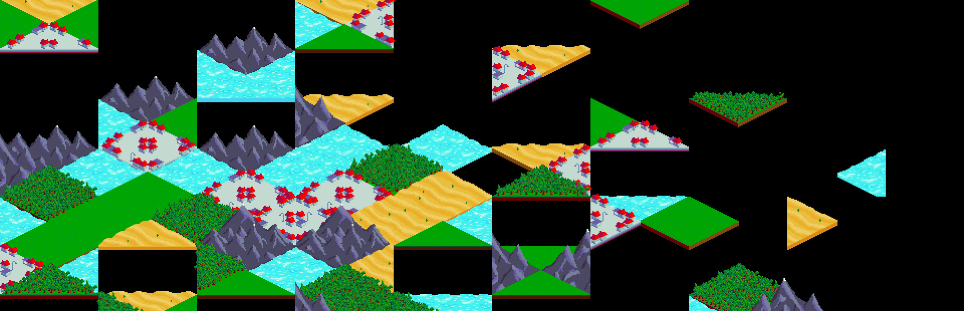 When connected, the edges of these tiles form regions of the game's biomes in the isometric plane: