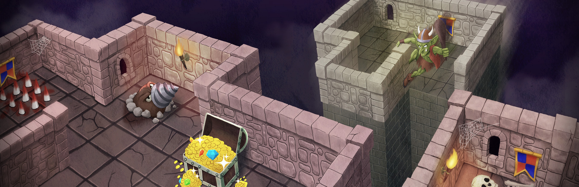 Venture inside dungeons you build yourself, just as you explore them. Place blocks to form paths for the knight and lead him across the dungeon.