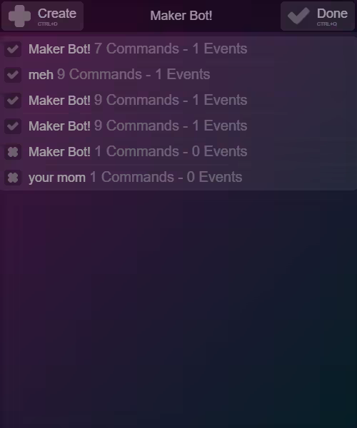 If you're coming from Discord Bot Maker (not affiliated), you'll find that this app is very similar (although more updated) in most cases.