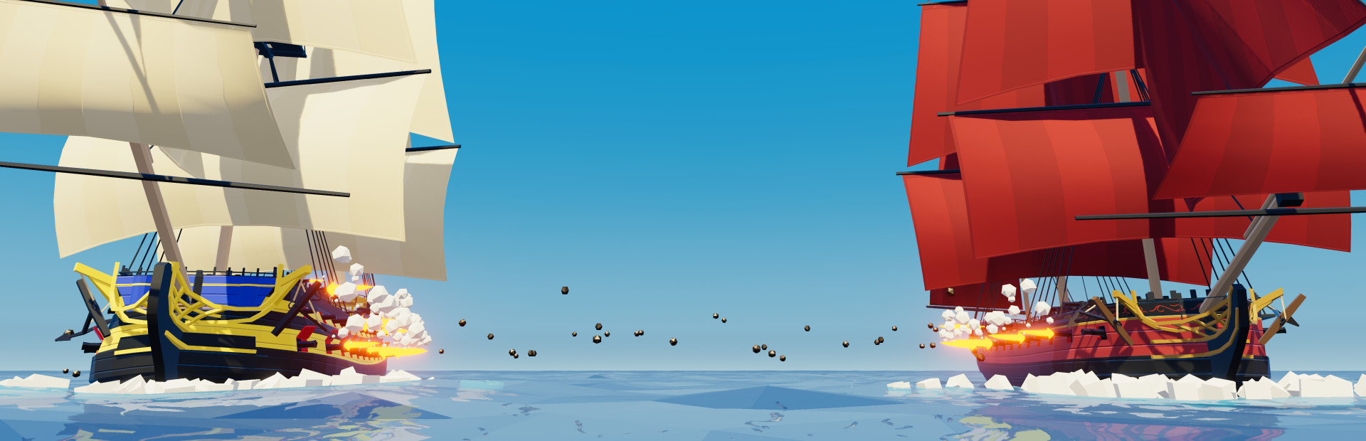 Buccaneers! is fully-playable in VR as well as standard mode, with shared game saves between both modes. In VR, your full-scale warship is brought to life as you steer it by hand and use any combination of melee and ranged weapons to slay your foes however you want.