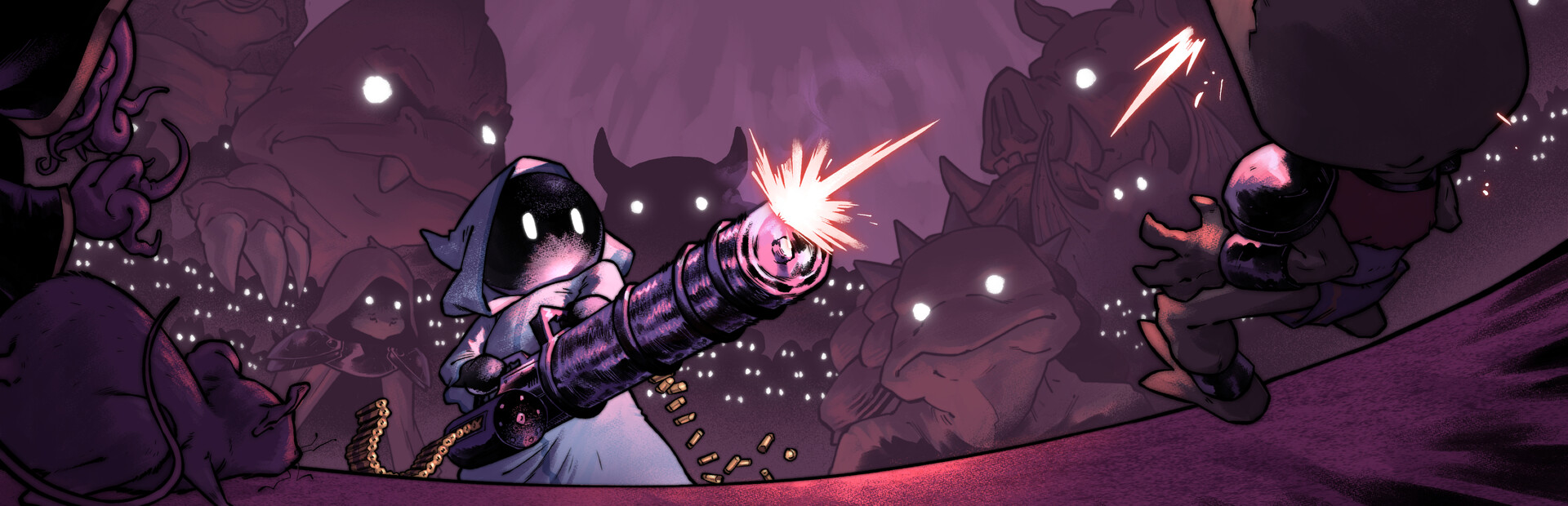 Bulletmancer is a bullet heaven roguelite with a strong focus on shooting synergies where you fight hordes of enemies from a turret. Choose a wizard, a region, a corruption level and start collecting different spells to create new combos each run. Unlock new upgrades, maps and characters, buy glyphs to increase your stats between runs and face new challenges each time.