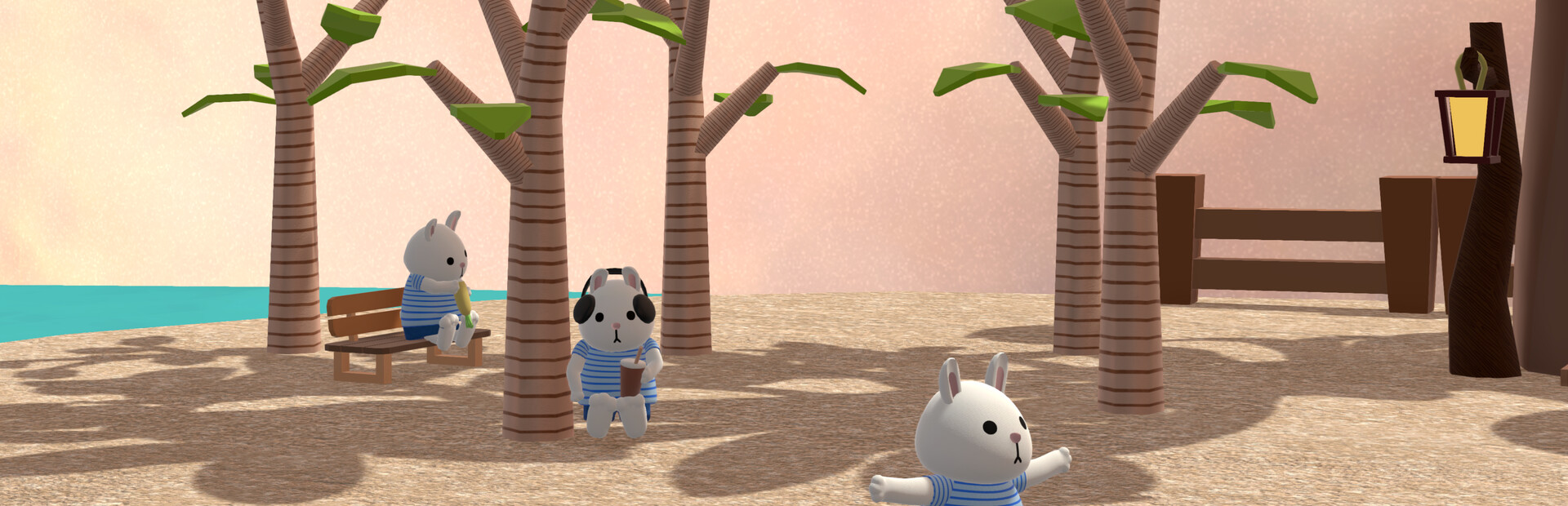 After bunnies reached their daily working hour, bunnies can go to play. They might sit on a bench, or visit an art museum...