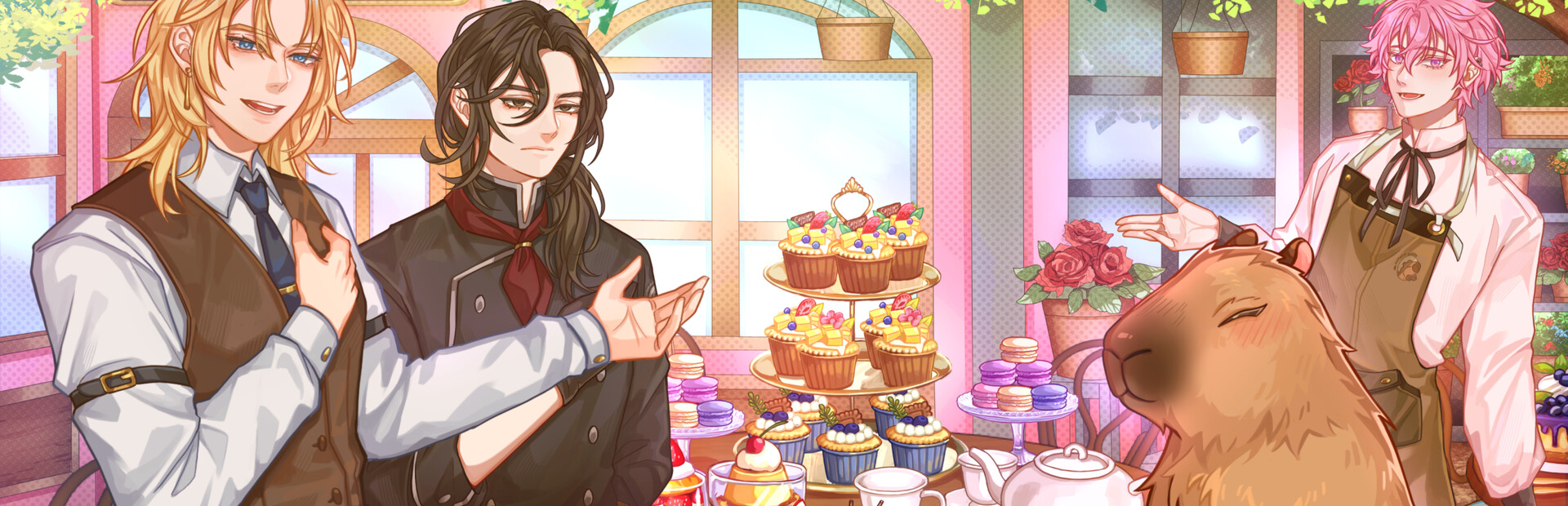 To escape your financial hardship, you’ve taken a job at a quiet little coffee shop in a sleepy town—where the locals are kind, the pastries are warm, and the capybaras? Well… they talk, wear little aprons, and might just steal your heart. And did we say, they have handsome human forms at night?!