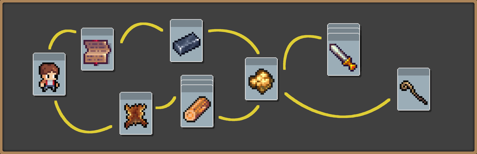 Card Weapon Shop is a simulation of running a weapon store using cards. Players can stack employee cards on natural resource cards to obtain resources, or on various materials to build different forging facilities. Forge weapon/tool cards to sell or synthesize characters of different professions. As the game progresses, the player must make good use of the precious time each day to make more weapons to earn money, and at the end of each day must pay the employees. If you fail to pay your employees, they will leave you!