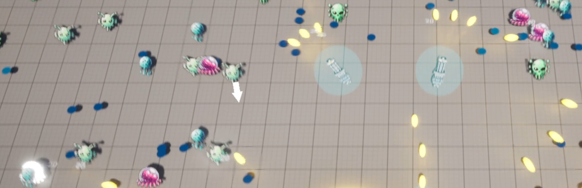 Defeating monsters causes them to drop experience gems. Collect them to level up.