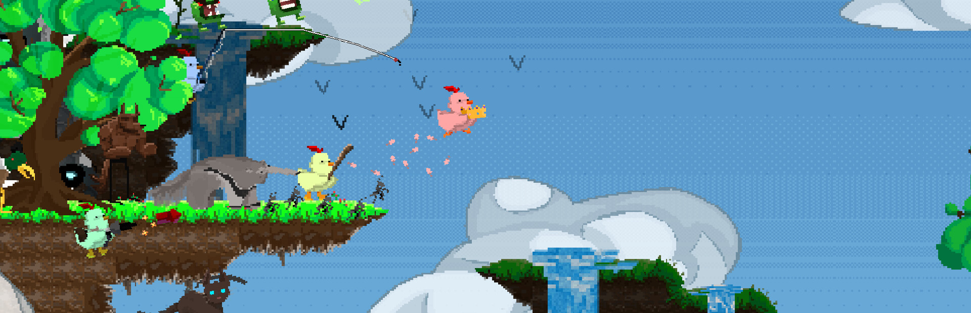 Chicken Fight is a platformer beat 'em up where you utilize your environment to defeat your enemies who consist of mutant frogs, werewolves, and even other chickens. There is a variety of modes, maps and gamemodes to play for everyone to enjoy.