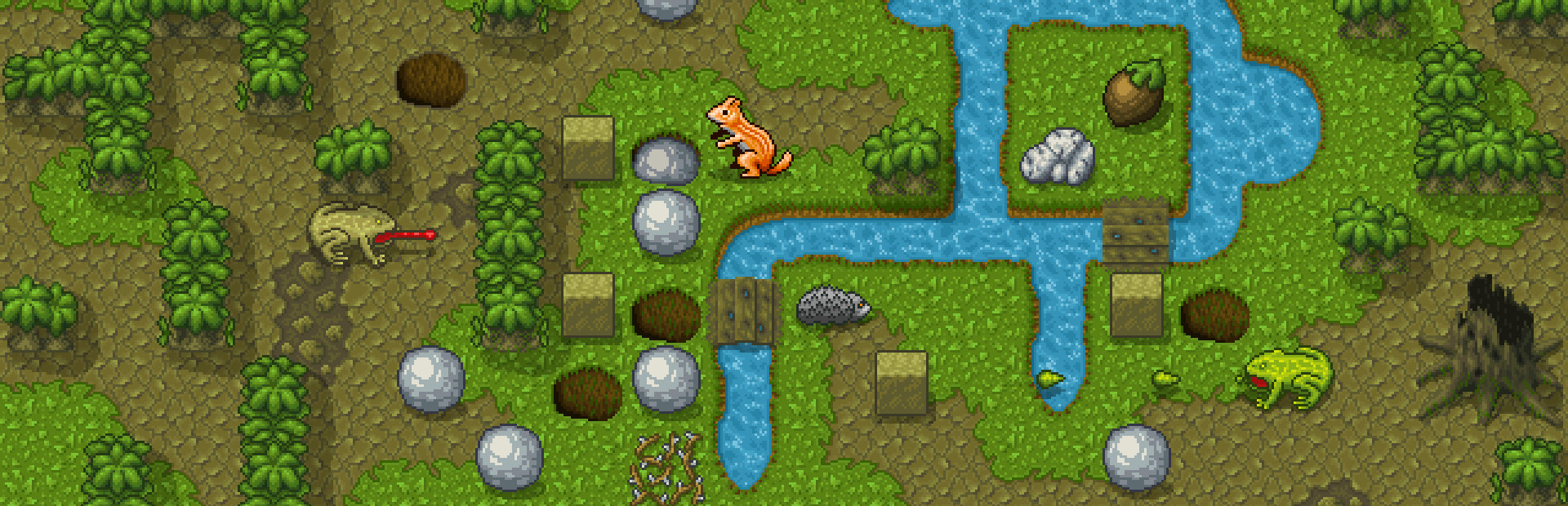 ● Beautiful pixel art. Forest, rivers, and animals