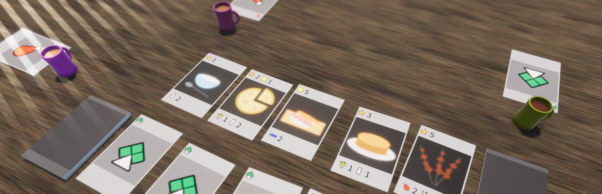 - Players get food cards and cooking cards in order.