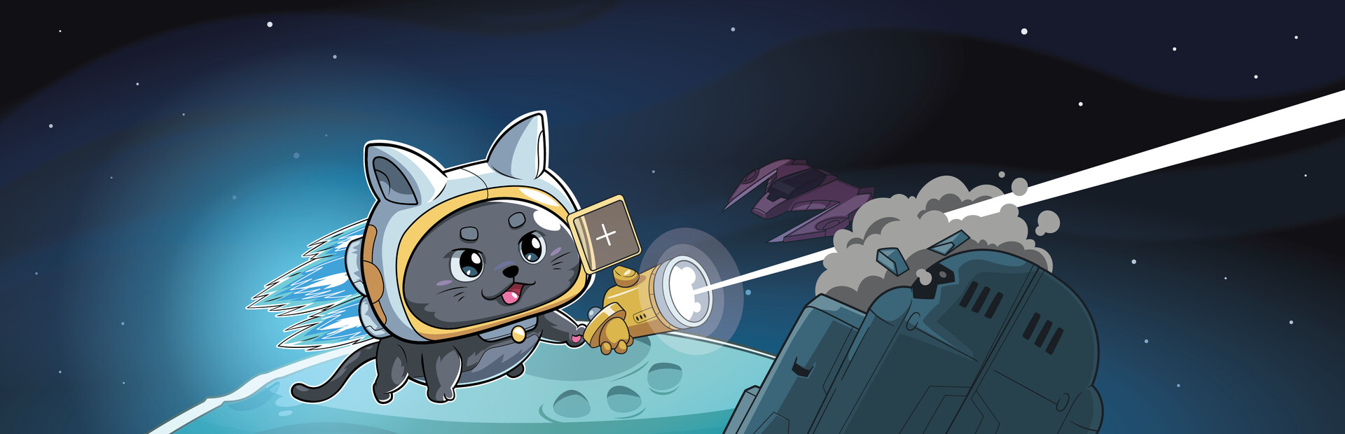 Survive intense battles while adventuring as Cosmos Kitten in the depths of space! Obtain powerful upgrades to unleash specialized builds against an assault of enemy attacks in this action arcade roguelite. Launch a gravity bomb to group enemies, and dash to eliminate them with an explosion. Attack with a light sword to keep opponents at bay, and use a flamethrower to burn nearby crowds. Play optional local multiplayer mode with friends.