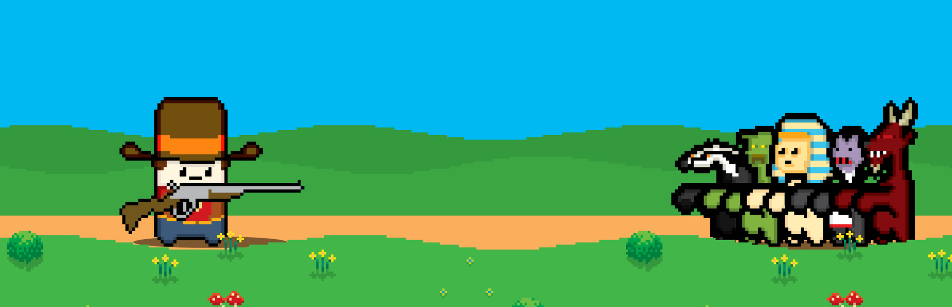 The local miners have accidentally opened up the gate's of Hell. Now the hordes of monsters that were trapped there have poured out and descended upon our peaceful town. Hire a posse of cowboys and lead the fight to drive these demons back to Hell.