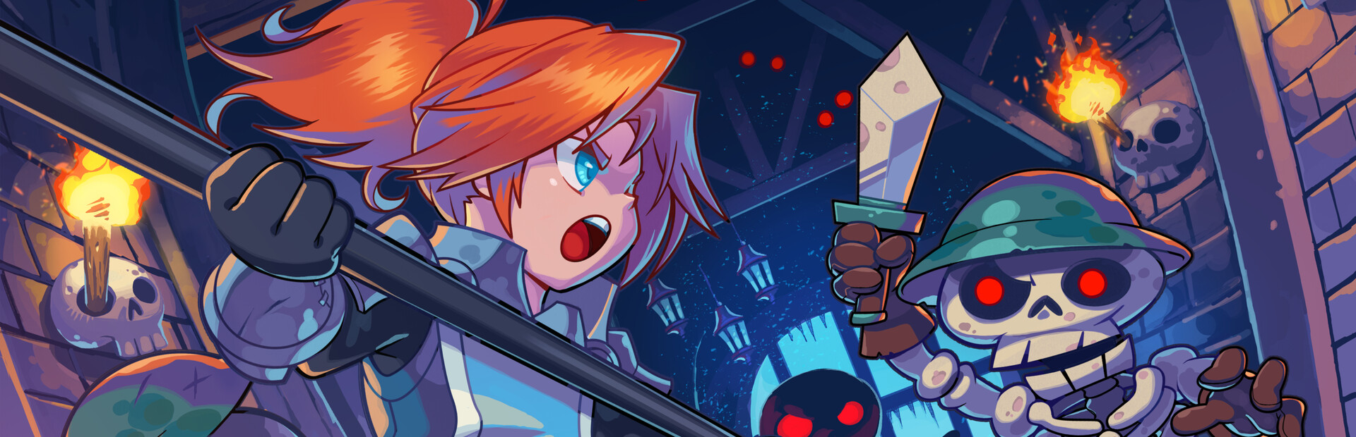 Brave adventurer Lance loved to party with his friends, but one night he ate too much and fell into a deep sleep. The vile Vizardians then stole his treasure and even took all his weapons, leaving only his giant spear. Lance entered the catacombs of death to confront the thieves and recover his lost possessions, but he soon realized why the spear was left behind: It barely fits in these cramped rooms!