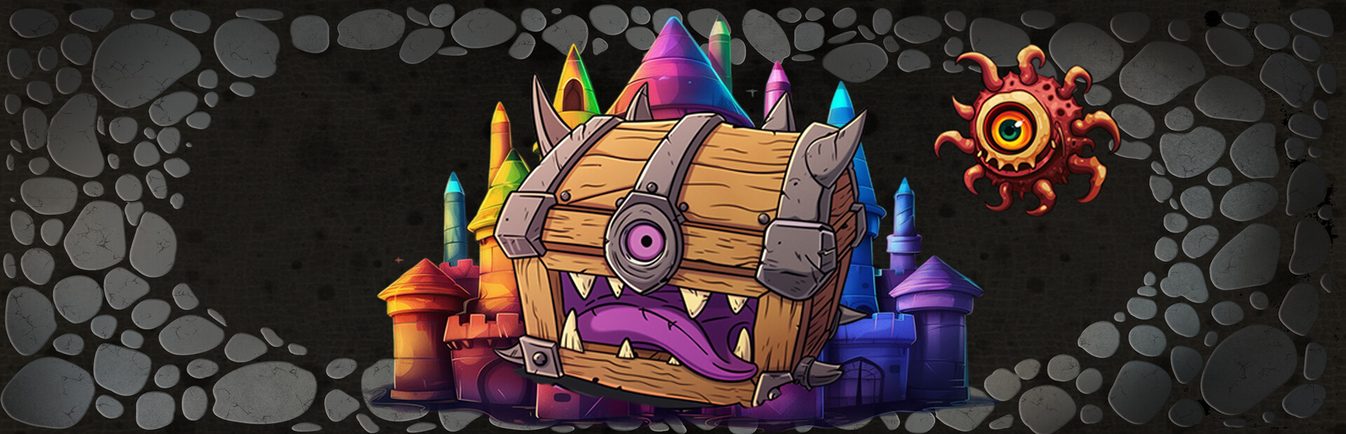 In the realm of Crayonia the world was once a beautiful place, that is at least for the nobles of the realm. Each of the 8 Royals became focused only on what made them happy. They stole the wealth from the surrounding lands until the towns began to dry up and fall to ruin. An Enchantress called the Timekeeper, showed pity on the Crayon Kingdom, and placed a curse on the Crayonian bloodline. Removing the castle from time, she placed the Floating Island into a never ending rainbow storm, and unleashed a Never-endingly Hungry Mimic to eat all of their possessions. The nobles were turned into Magic Doors and forced to watch. Until the Mimic was sated they couldn't escape. She left behind Beholders to put them back in their frames if they ever discovered a way to escape.