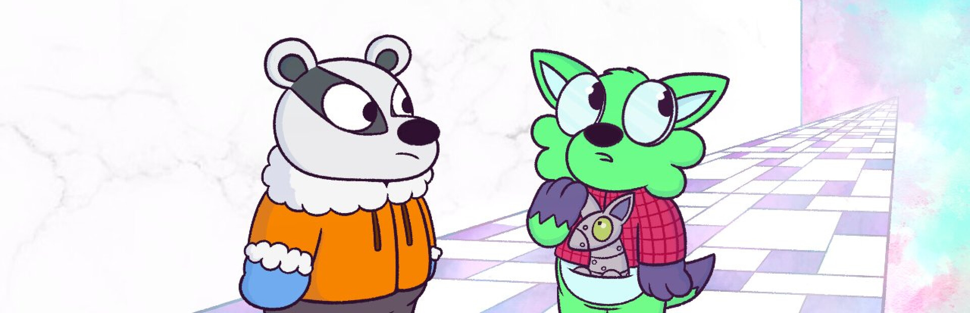 The Gardens is a world inhabited by cartoon animals and friendly cube people known as cubenen. Meet and engage with many of them at their place of business, and many more as you traverse the labyrinth of the mall.