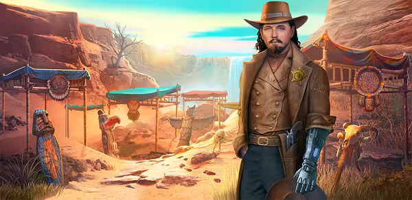 Conduct an investigation like a real detective: collect clues, talk to witnesses, get tips from townspeople, and gather information about your next destination. You will never guess what lies around the bend, but you can be sure it’s going to be fun! The Cyber West is waiting. Search for hidden items to reveal story clues that unlock new locations. Unusual characters, a mysterious gang, a competitor in the investigation, and, of course, a femme fatale are waiting for you! Embark upon a journey to carve out your own legend in the world of the Cyber Wild West!