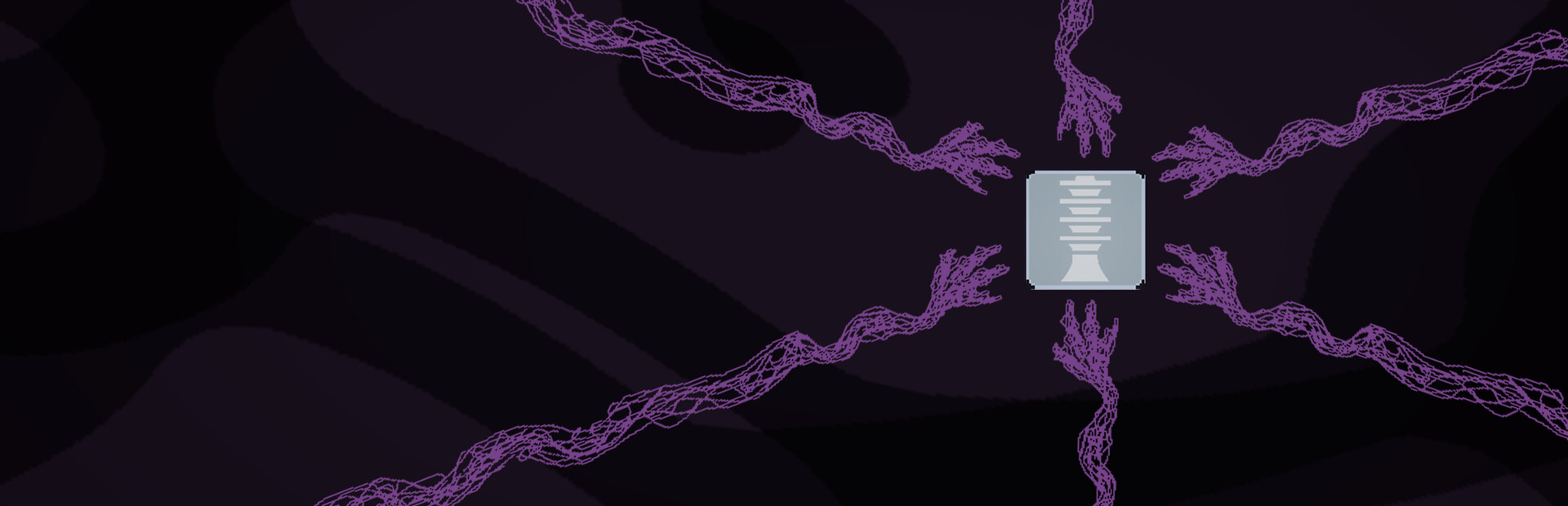 A minimalist world composed of squares and various icon symbols: