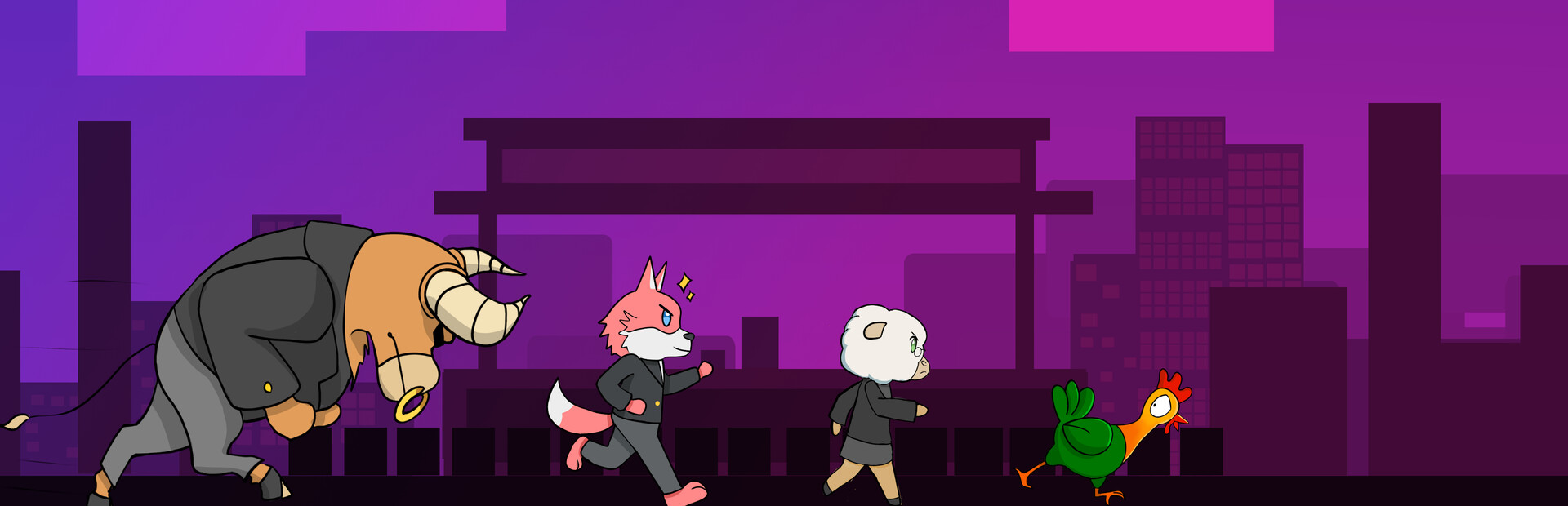Decorporate is a local multiplayer platform-fighter game. It can be played by 1 to 4 players on a single computer. Controls support both Keyboard, USB controller and Bluetooth controller devices. Players can also choose to fight AI controlled characters, with three different levels of difficulty.