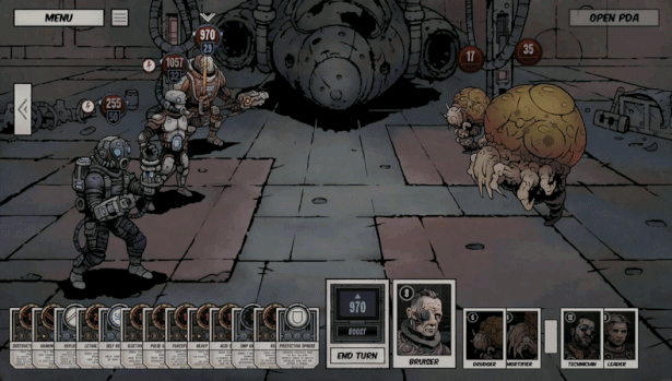 Build and control a squad of up to three mercenary characters and set on to explore derelict ships within your reach from the scavenger's base. Searching the derelicts for loot and clues, you come across many friendly inhabitants and traders, but more often – various enemies. Challenge and defeat them in tactical turn-based fights, where randomly-drawn cards form your changing arsenal of combat actions, gain experience for yourself and your crew, loot dead bodies, resupply and upgrade once back at your base. The scavenger's home ship gives you the opportunity to heal and level-up your mercenaries, recruit new ones, equip them, upgrade their gear or recharge energy for life support during missions.
