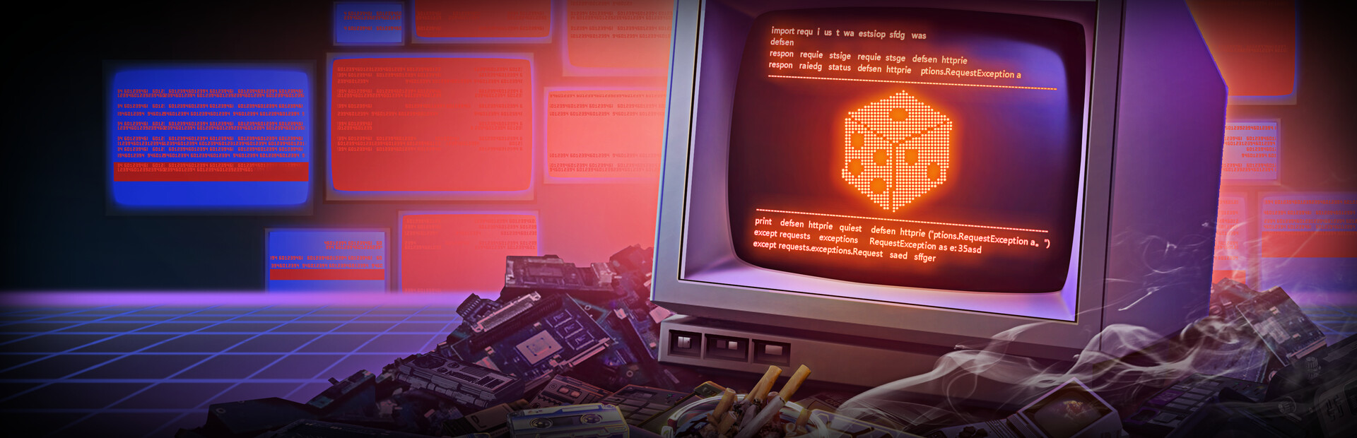 Every die is a cipher key to rewrite code; every roll tilts the balance of the digital abyss