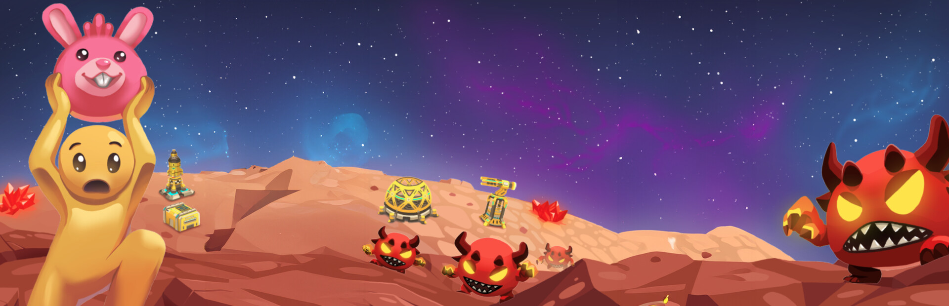 ⬆️ Clone your first 🐷Dinky, give them 👉orders to help you, Research 🦾Automation Machines, Defend your Colony from the 👿Zumbys, Build a 🚀Rocket, colonize other 🌍Planets and set up supply chains between them!