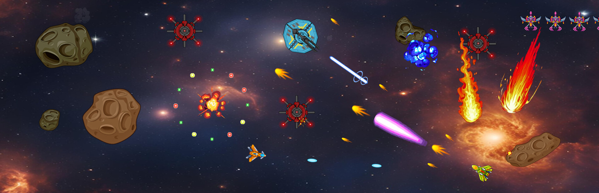 Navigate increasingly chaotic patterns of enemy fire while the music intensifies around you. When the bass drops, brace yourself as devastating comets hurtle toward your ship, testing your reflexes and evasion skills to their breaking point.