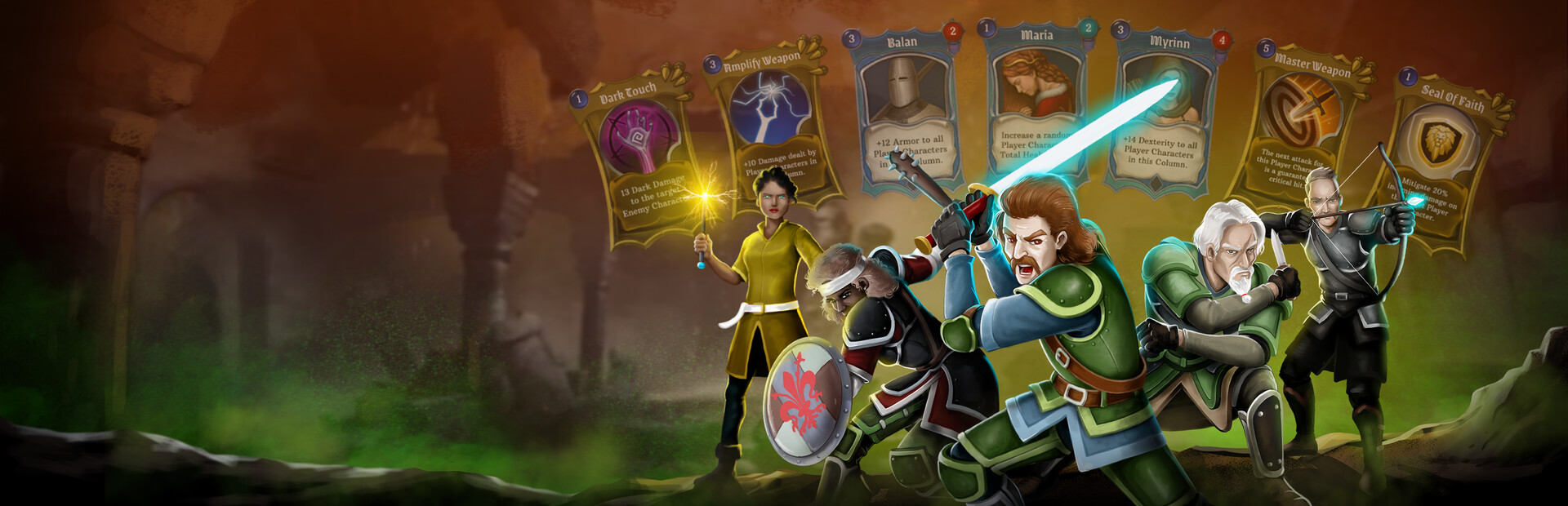 - Each of the three cards are suited by color Red, Green and Blue. These colors represent their Archetype Strength, Dexterity and Intelligence.
