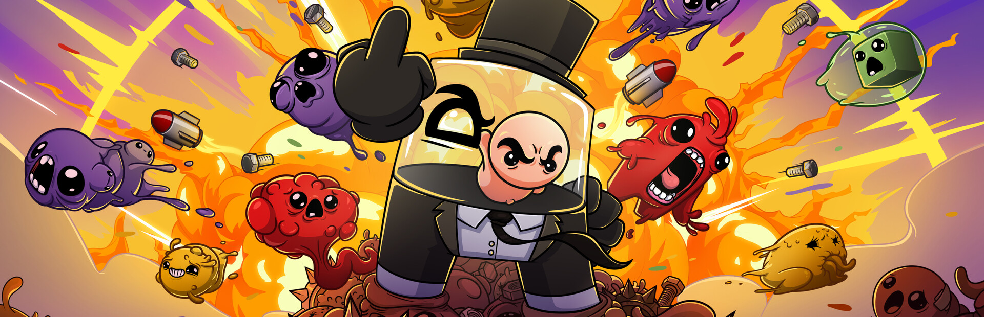 Puzzle your way through familiar Super Meat Boy and Super Meat Boy Forever locations like the picturesque forest, the hospital, and salt factory in a fresh Puyo Puyo-inspired format. However, in Dr. Fetus’ Mean Meat Machine, matching at least 4 clones of the same kind and creating awesome combos isn't enough – you'll also have to avoid lethal hazards and traps, such as sawblades, rockets and pendulums. It’s a demented and hardcore spin on the classic puzzle formula you know and love!