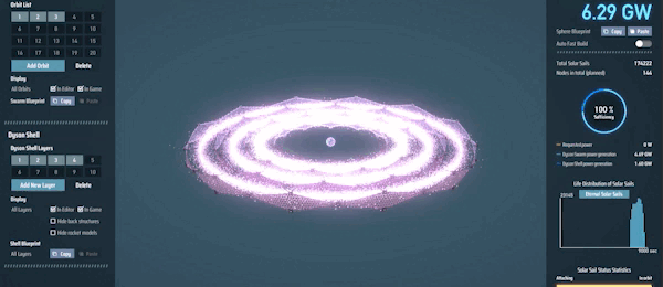 You can construct Dyson Shells on multiple orbits, and each layer of the Dyson Shell can be customized. Connect various nodes on the Dyson Shell, creating the patterns you desire. Each Dyson Sphere is a unique masterpiece crafted by you.