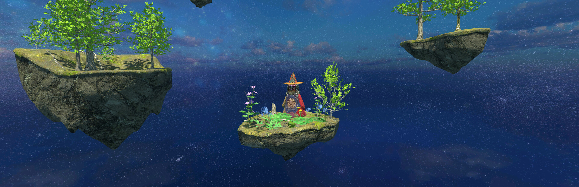 Ecto is a highly-randomized nature world, featuring smooth, addictive movement. Jump around on colorful, nature-inspired floating islands with your friends or solo. Pick up trinkets, buy and upgrade stick guns, hang out with frogs and fight robots in the underworld.