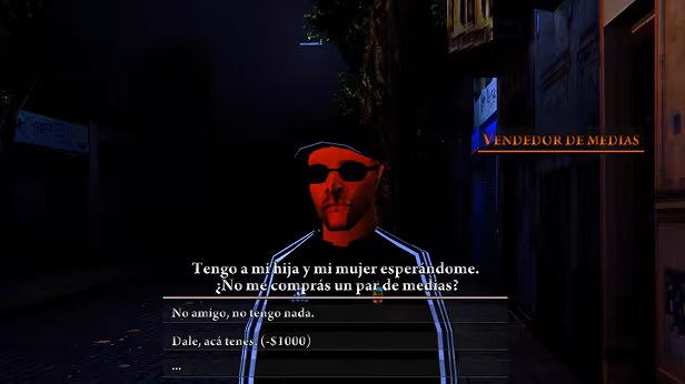 You play as a guy who's just left a high school reunion party, completely defeated. The girl you liked back in school, once again, didn’t even notice you. It’s already 3 AM, and while trying not to overthink everything, you wander through the streets of Constitución, hoping to catch the last bus of line 39 that takes you home.