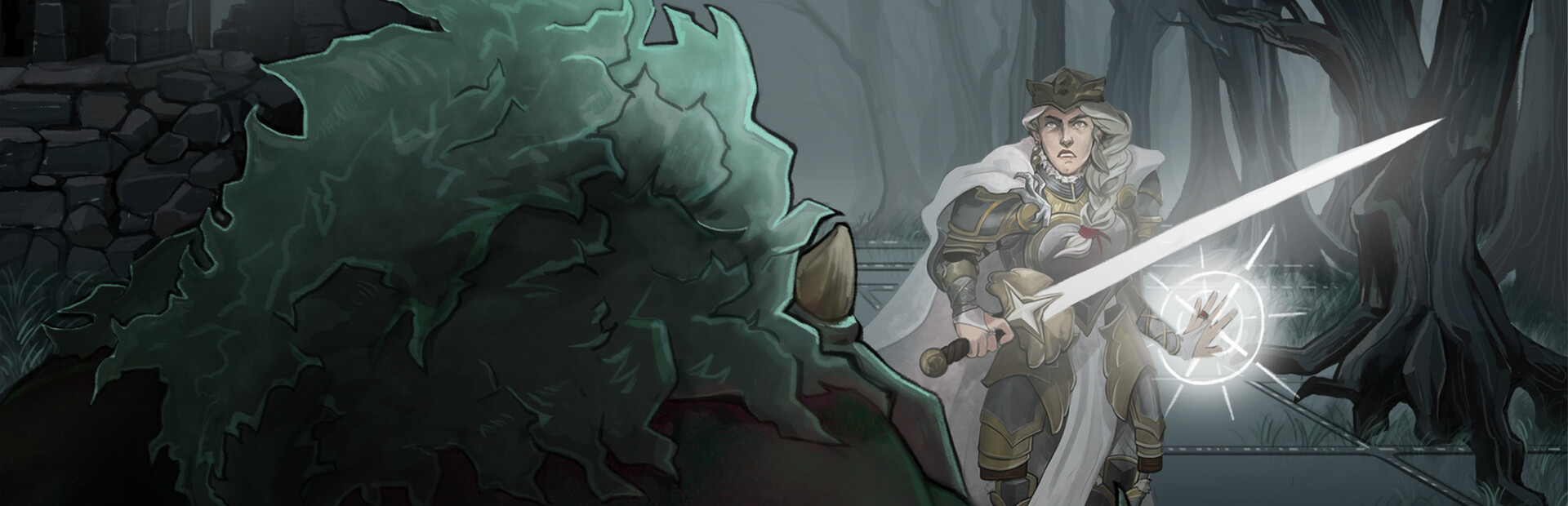 Devise your path through a series of battles which are periodically affected by the Veil, a magical world state that strengthens dark magic and unlocks additional abilities. Your battle strategy and selected actions will affect your allies' affinity towards light or darkness and influence the state of the world. A fighter who exploits the dark magic of the Anderswelt will be stronger but more susceptible to losing their mind, a risky gamble since the creatures of the Anderswelt will try to assimilate every knight into their own ranks as soon as the Veil takes effect.
