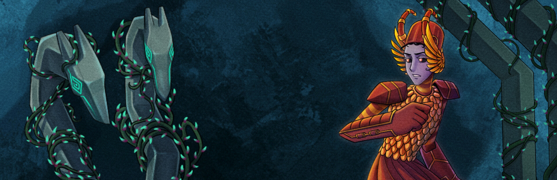 During your explorations, you’ll occasionally encounter a headless statues of Lahmu - the God of the Underworld. Reunite the statues with their lost heads to receive comics pages. These pages tell the story of two local hunters, Jachan and Agol, on their adventure outside the Temple city´s safety.