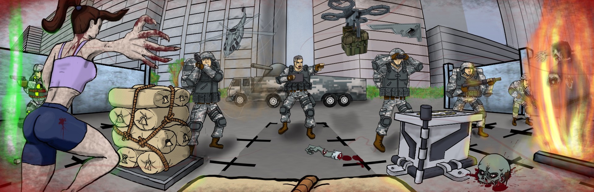 History: A war between the north and south zones forced all retired soldiers to return to service, Colonel Steve among them. Steve has a special mission within his own territory, and this is to recover the containers from laboratory 3. This would be a simple mission if it weren't for the fact that he must confront the biological weapons that the enemy used in the city and the scarce resources assigned to him. Will he be able to overcome all obstacles? It depends on you.