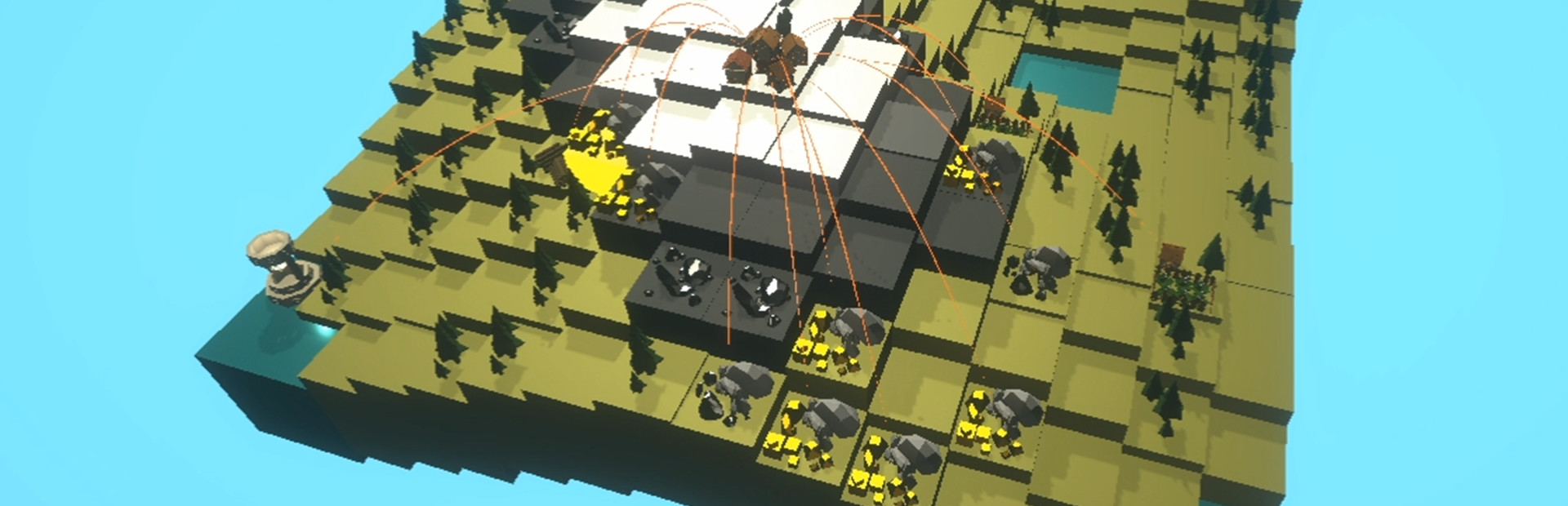 - Build a settlement out of various building: a village, mines, lumber mills, etc.;