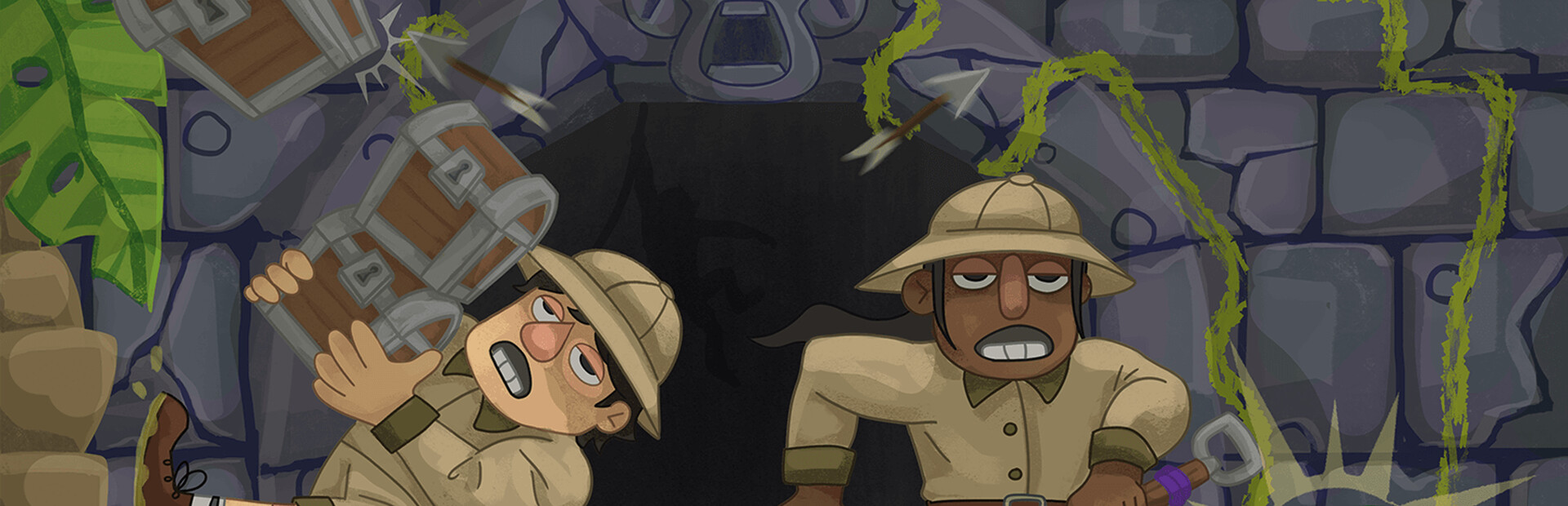 Fool’s Gold is chaotic, couch co-op treasure hunting mayhem! Partner up and play as a pair of bumbling adventurers as you fight and fumble your through ancient locales, seeking the most valuable treasure possible. Teamwork is key, as you'll need to navigate deadly traps, perilous enemies and environmental puzzles, to transport your treasure back to the escape vehicle before time runs out!