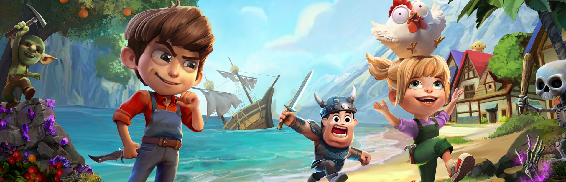 Explore the island and learn how to farm, craft, cook, fish & more. Build a base and complete quests to help contribute to your new island home.